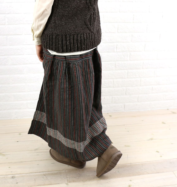 tumugu(ツムグ) リネン ストライプ ギャザー ロングスカート・TB14323