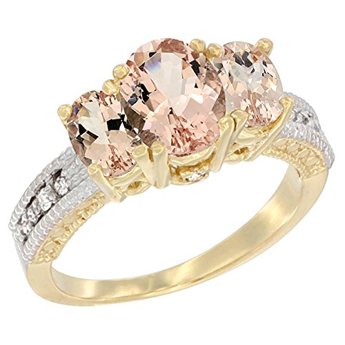 -. Title : 14K Yellow Gold Diamond Natural Morganite Oval 3-stone Ring, sizes 5 - 10