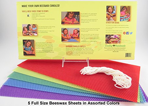 Make Your Own Beeswax Candle Starter Kit - Includes 5 Full Size 100% Beeswax Honeycomb Sheets in Assorted Colors and Approx. 6 Yards of Cotton Wick. Each Beeswax Sheet Measures Approx. 8" x 16 1/4".