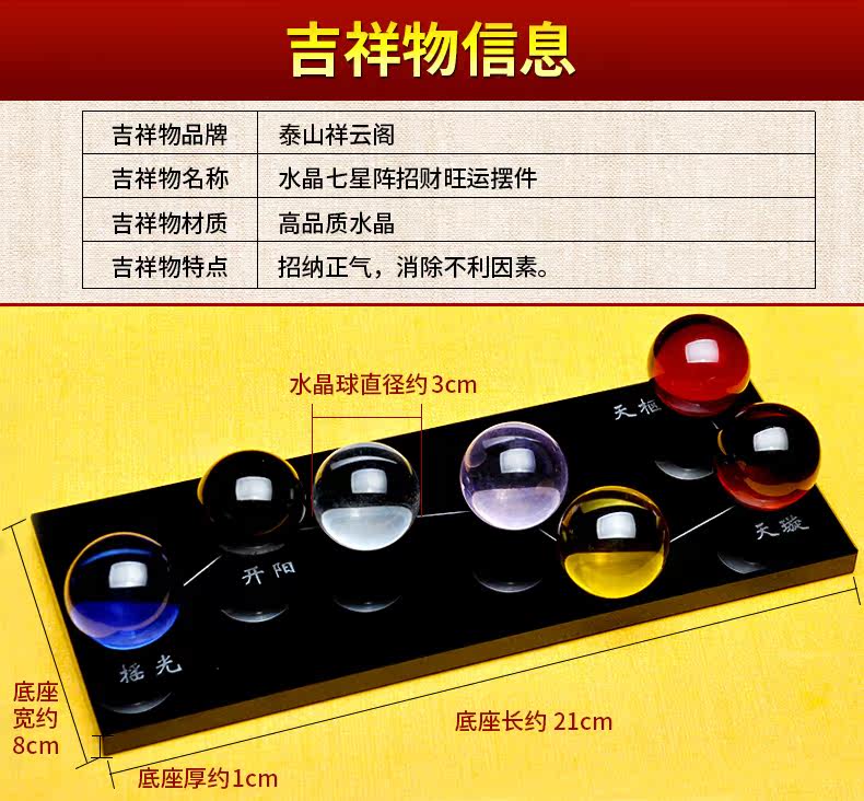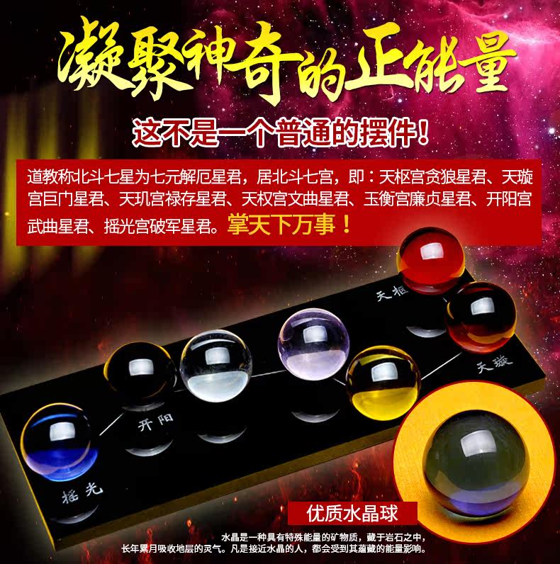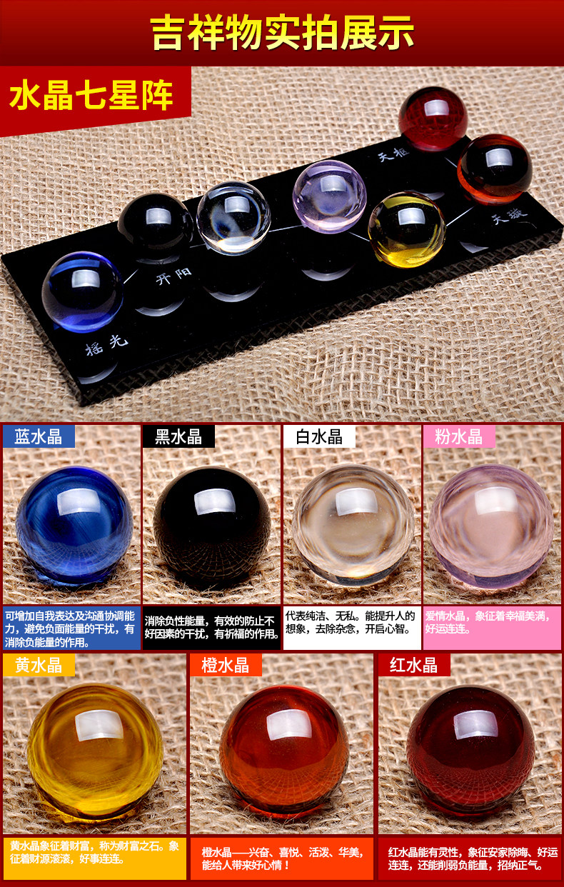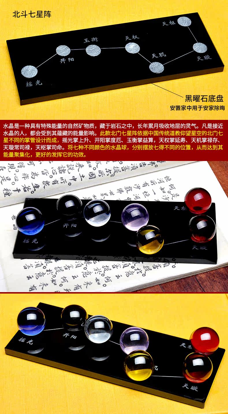 祥云阁黑曜石水晶球摆件黄水晶粉水晶北斗七星阵风水开业礼品摆件