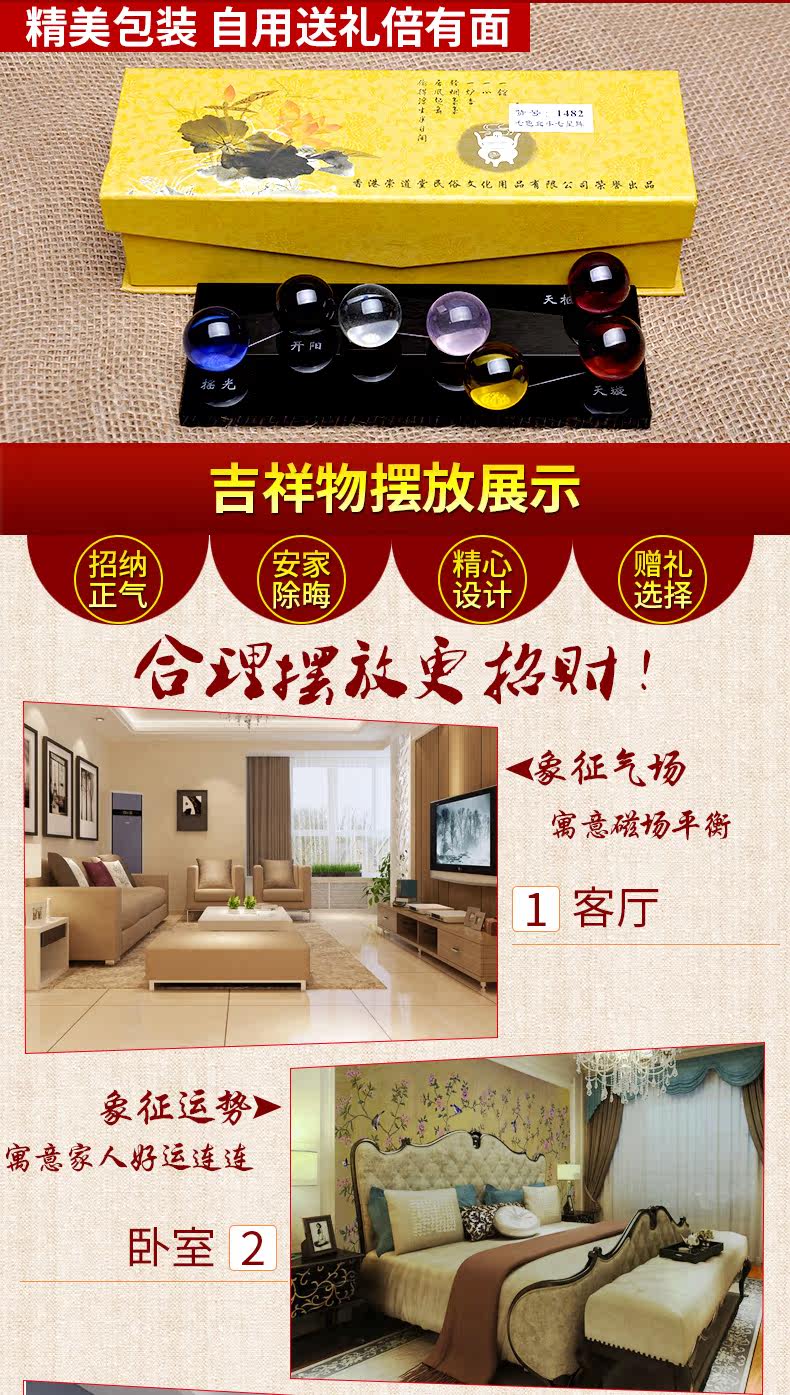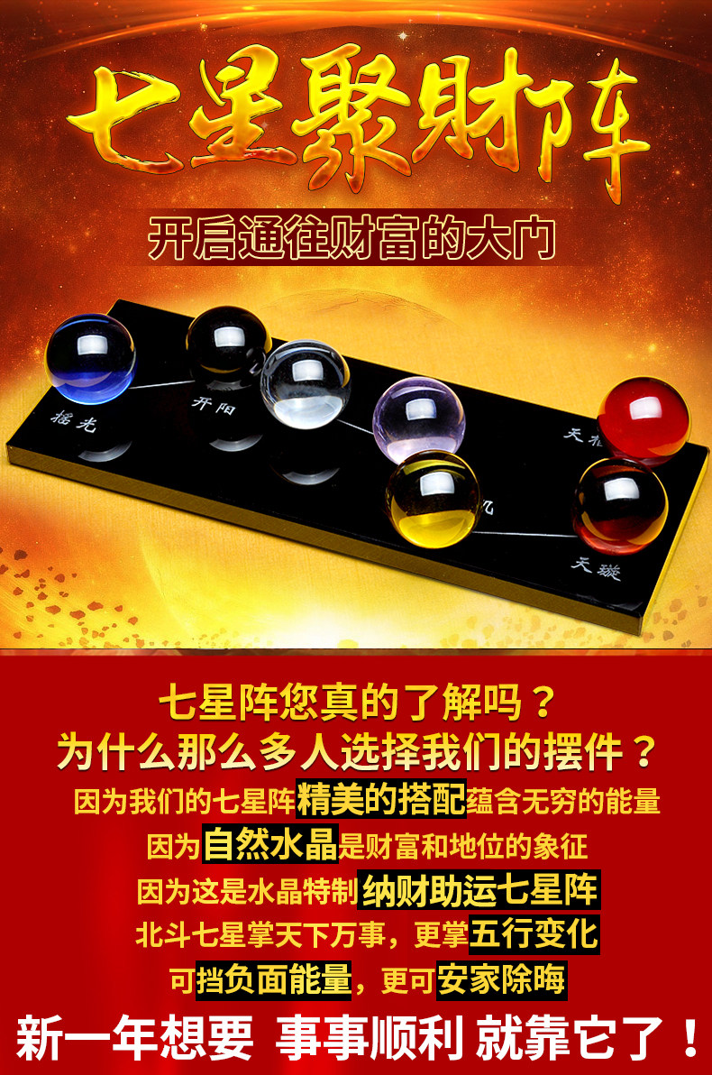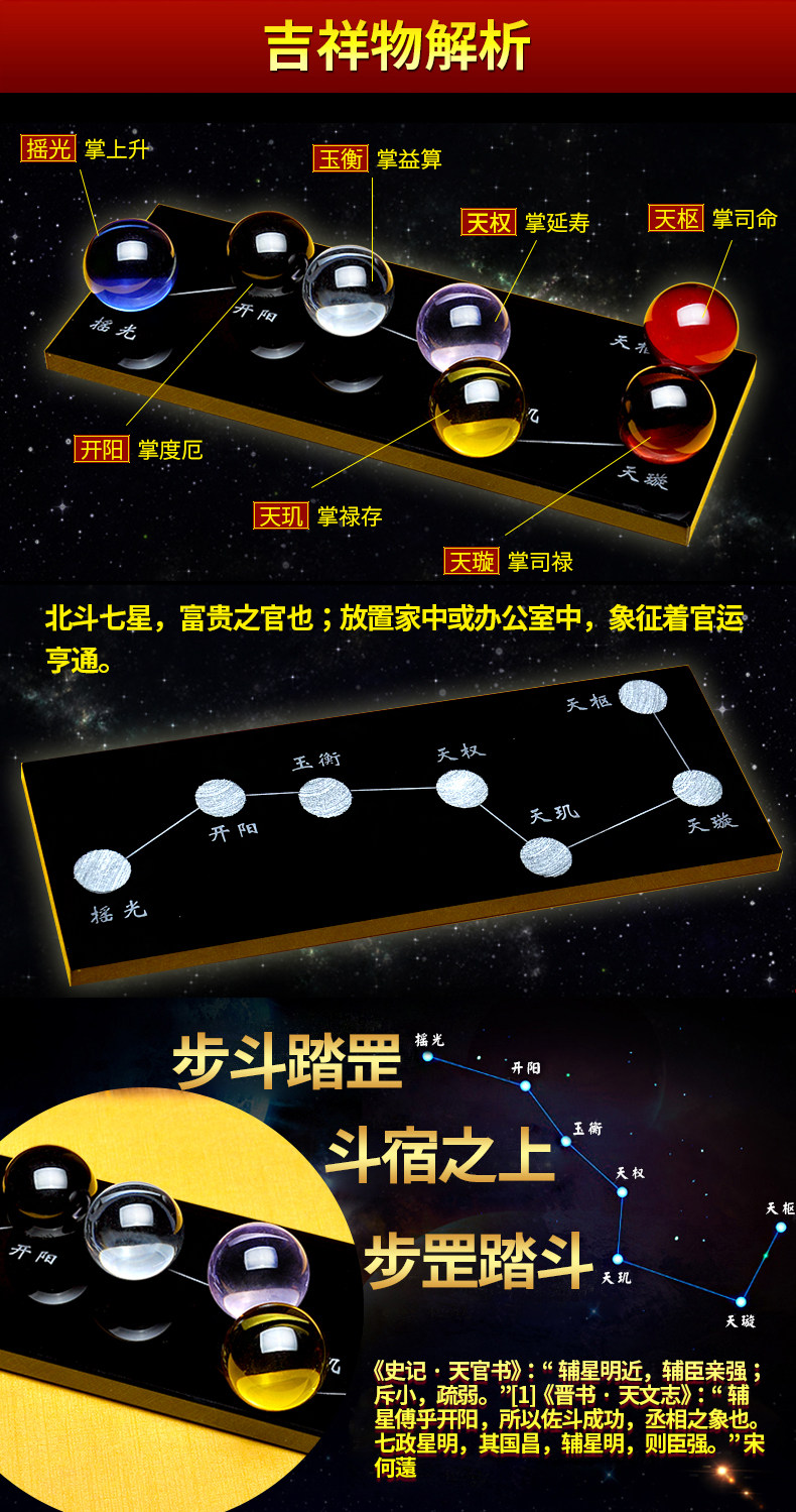 祥云阁黑曜石水晶球摆件黄水晶粉水晶北斗七星阵风水开业礼品摆件