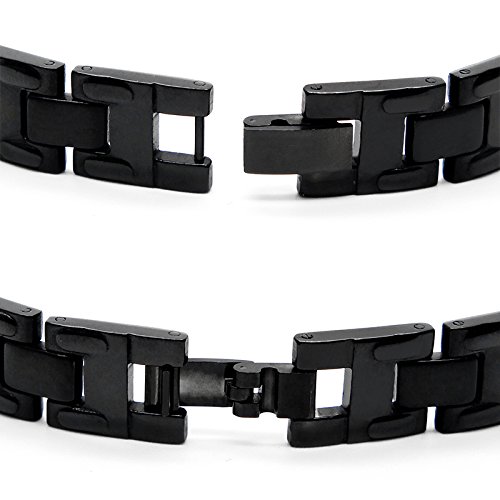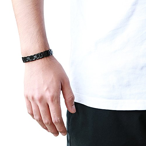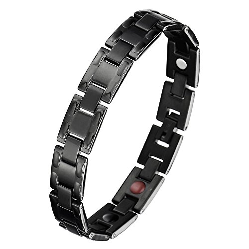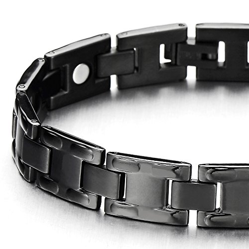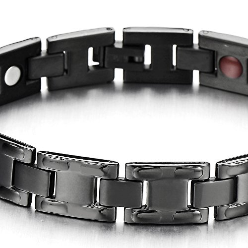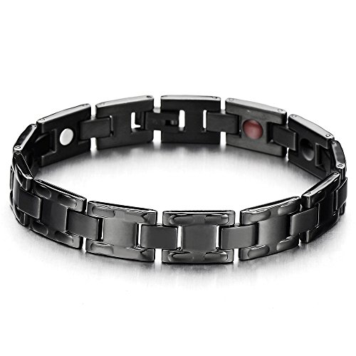 맨즈의 블랙 스틸 팔찌with Therapy자석의 요소 게르마늄,무료 링크 떼내어 키트