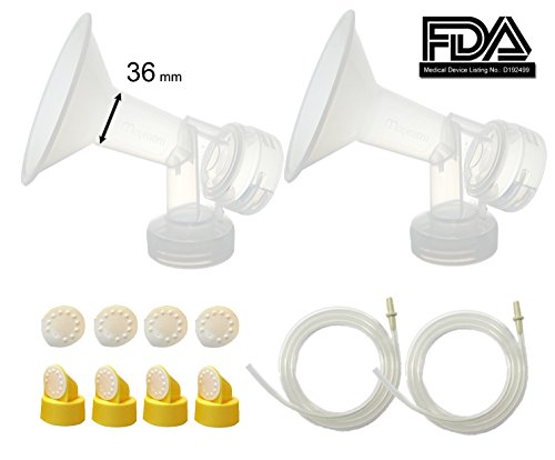 This product is designed to use with Medela Pump-In-Style Advanced breastpump, released after July 2006.CONTENTS It contains 2 breastshields with the size of your choice, 4 valves, 8 membranes, and 2 pump-in-style tubing. The tubing has an adapter on one end and a blunt end on the other. The breastshield is designed in one-piece, and thus, have better suction than 2-piece ones. In addition, we give you extra valves and membranes so you can have replacement when existing ones break.