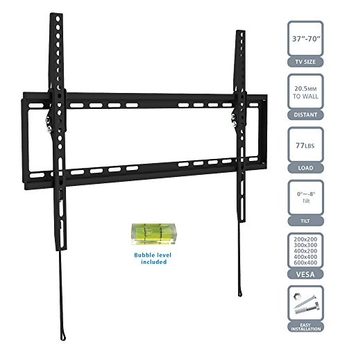 -. Binding : Electronics -. Brand : ProHT -. Color : Black -. EAN : 0012405054090 -. Feature : Ultra slim tilt TV Wall Mount is designed to fit any 37"-70" Flat Panel TV up to 77lbs. Super Slim design sits just 0.8inch from wall to complement the sleek look of ultra-thin TVs. +0°~-8° Tilt, Fit VESA 200x200, 400x200, 300x300, 400x400, 600x400. Max Hole Pattern: 402x638mm. / Freely tilting allows easy TV angle adjustment. Lateral shift allows TV to slide left and right for perfect placement. / Convenient click-in sP.R.Ing lock with quick-release cords provides a safe and easy connection. / Open architecture provides superior ventilation and easy access for wiring. / Simple construction ensures a quick and easy installation. 100% safety guarantee. -. Label : ProHT -. Manufacturer : ProHT -. Model : 05409A -. MPN : 05409A -. PackageQuantity : 1 -. PartNumber : 05409A -. ProductGroup : Home Theater -. ProductTypeName : AV_FURNITURE -. Publisher : ProHT -. Size : 26.2 x 1 x 6.9 inches -. Studio : ProHT -. Title : Slim Tilt TV Wall Mount (05409A) for 37" to 70" LED/LCD Plasma TV Monitor, VESA up to 600x400, +0°xFF5E;-8° Tilt, 0.8" Profile, Max Load Capacity up to 77 lbs. Power by ProHT -. UPC : 012405054090