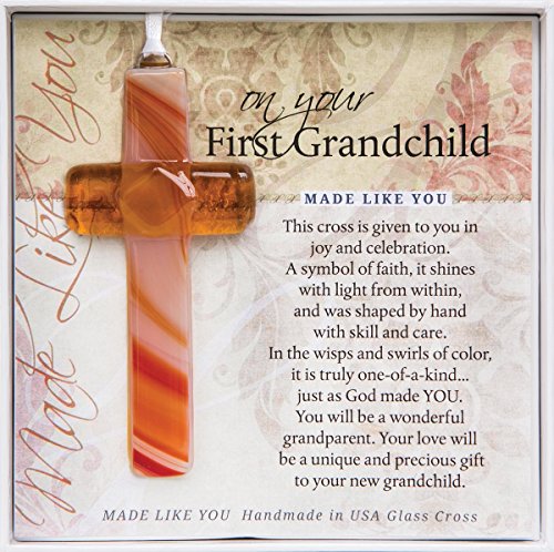On Your First Grandchild Keepsake Glass Cross Gift for New Grandparents