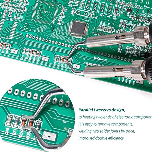 - High-power heater, Tweezers parallel design. When need to remove the electronic components, you can use the parallel Tweezers to heating the components and weld joints