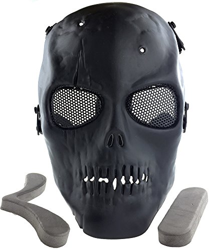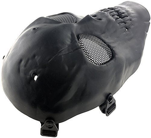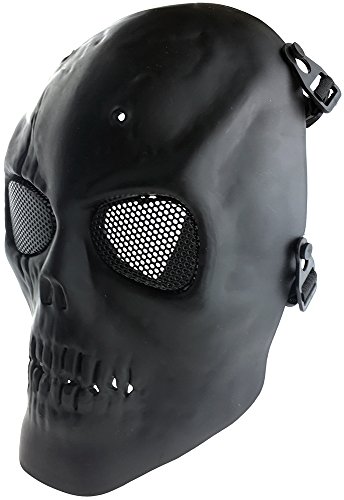 -. Binding : Misc. -. Brand : SportPro -. Color : Black -. EAN : 6081499598517 -. Feature : • Super Light and Impact Resistant / • Adjustable Head Straps / • Padded Head Strap for Extra Comfort / • Mystery and Horrifying Look / • Rubber Padded Inside for Increased Comfort -. IsAutographed : 0 -. IsMemorabilia : 0 -. Label : CM -. Manufacturer : CM -. ProductGroup : Sports -. ProductTypeName : SPORTING_GOODS -. Publisher : CM -. Studio : CM -. Title : SportPro M01 Skull Skeleton Metal Mesh Eye Protection Full Face Mask for Airsoft - Black