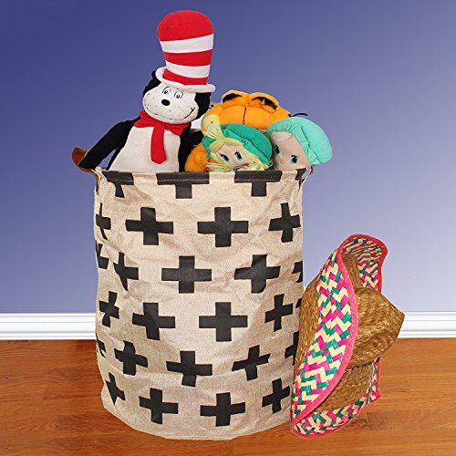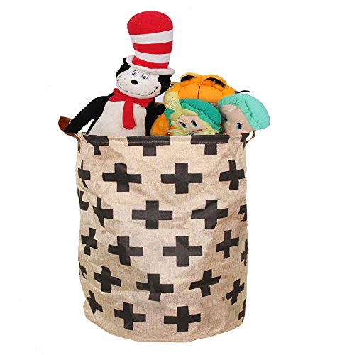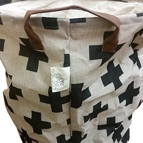 Toy Storage Bin Perfect for Toys Clothes or Laundry leather Carry handles cotton plus sign design where organazation and style meets 22 by 16 inch By Decor Hut