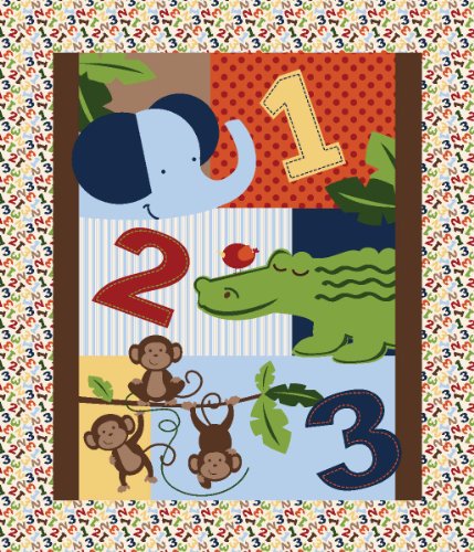 Springs Creative - Fabric Jungle 1, 2, 3 Quilt Panel Fabric by The Yard, 43/44-Inch Wide