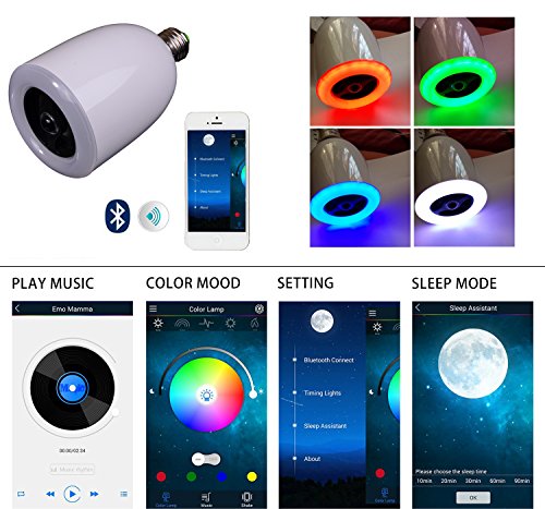 SMART FUNCTION: Unique digital timer mode help you turn off the bulb at night. And wake you up with your favorite color and love song. Shake your phone for random color, close/open light, play/pause or next song at your favorite.