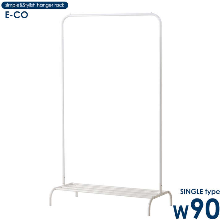 ●無駄の無いシンプルなデザインに、明るく清潔感のあるホワイトに仕上げられた、おしゃれなハンガーラック・エコ。