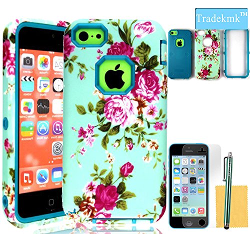 Tradekmk Hybrid Case with Stylus and Screen Protector for Apple iPhone 5C- Blue+Purple