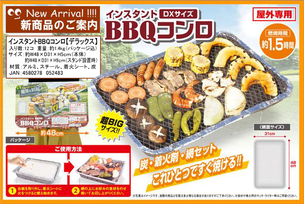 ●炭・着火剤・網が1セット。超BIGサイズ。超ビッグサイズのBBQコンロです。炭・着火剤・網がセットになって楽々です。