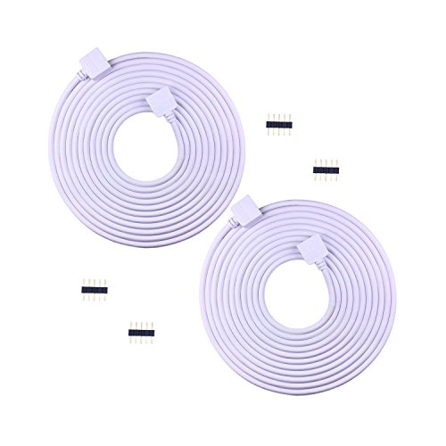 LitaElek 2pcs 2.5m 8.2ft Flexible LED Tape Light Extension Cable Cord LED Ribbon LED Rope Light Connector for 10mm Wide and 12mm Wide SMD 5050 RGBW RGBWW Flex LED Strip w/ 4x Male 5-pin Adapter Plugs