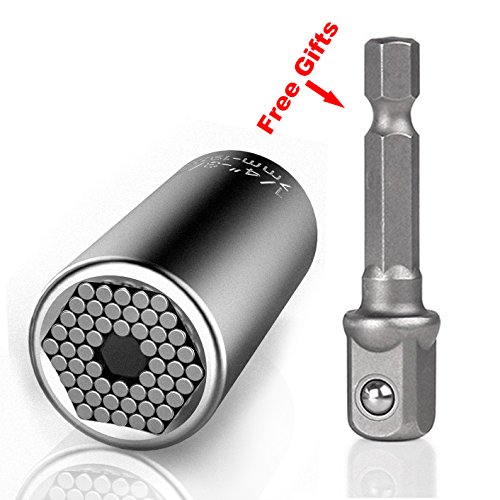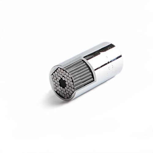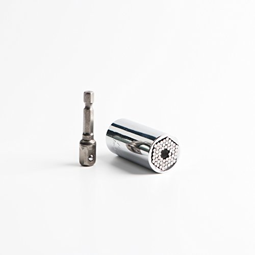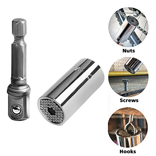 A universal socket can be adjusted immediately to grasp the hex nut, screw eye, hook, tension screw and bolt head. Works on a power drill.