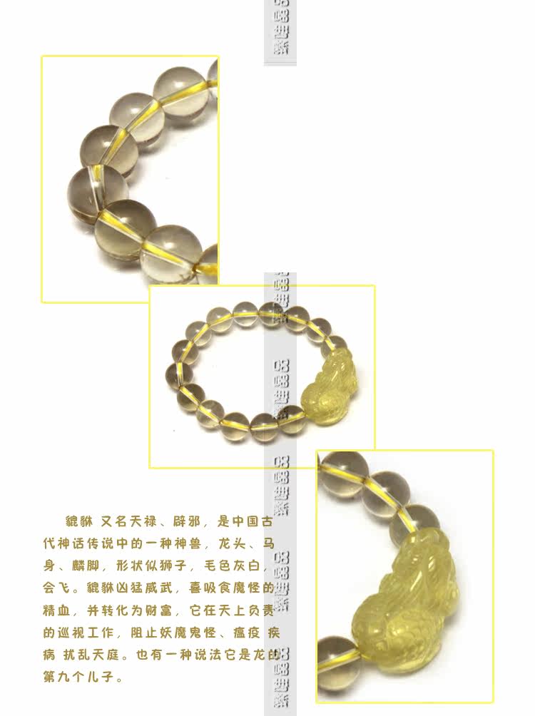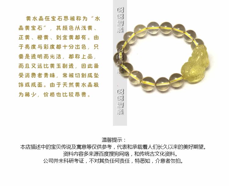 天然黄水晶貔貅手链黄水晶饰品 男女饰品