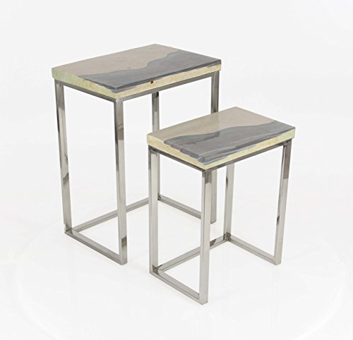 -. Feature : Set Of Two 21 inches And 27 inches Modern Reflections Stainless Steel Stone Table, Rectangular Polished Brown Stoneware Tabletops, Rectangular Silver-Finished Legs Made Of Stainless Steel