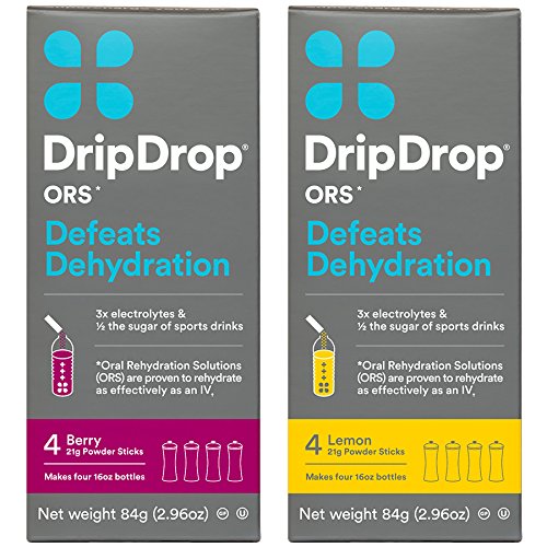 DripDrop ORS electrolyte powder sticks transform water into medical grade hydration. With 3x electrolytes and 1/2 the sugar of sports drinks, DripDrop ORS was developed by a doctor to hydrate longer for increased endurance, absorb faster for quick relief, with great taste for easy digestion.