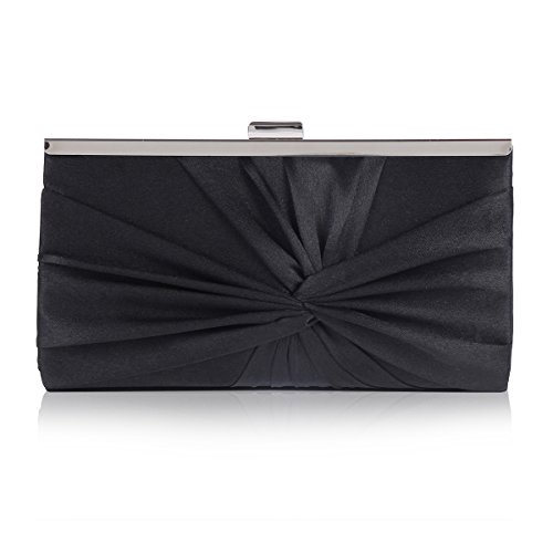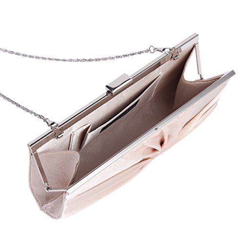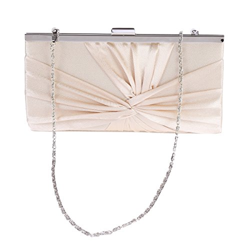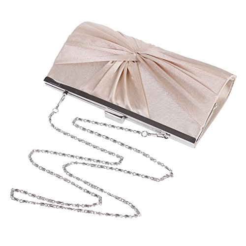 Dress up your outfit or your evening carrying your bare necessities in the satin clutch.It has a gorgeous pleated exterior.It is the perfect mix of elegance and glitz.?This clutch bag with?a metal clasp closure on the top?has a small shape and a colorful interior lining that offers just enough storage for your cell phone, cash and credit cards, lipstick, and one or two other must have items.A single interior wall pocket offers safe storage for small accessories while a chain provides versatile carrying options as a handheld clutch or shoulder bag.Purse measurement is app 21.5x11.5x4cm (8.46x4.52 x1.57 in), chain is app 120cm(47.24inch).?NOTE:Different people with different measurement,so it may exist 2-3cm measurement errors.Hope you will not mind it.Feature