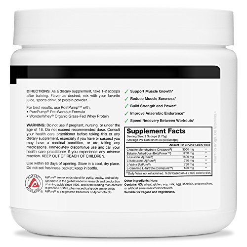 -. Title : PostPump - Clean Post Workout Supplement - Natural Post Workout Recovery - Vegan, Paleo, Non-GMO - Creapure Creatine Monohydrate, BCAAs, L-Carnitine - 225 Grams Powder