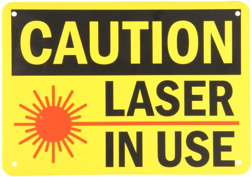 SmartSign Plastic OSHA Safety Sign, Legend "Caution: Laser in Use", 7" high x 10" wide, Black/Red on Yellow