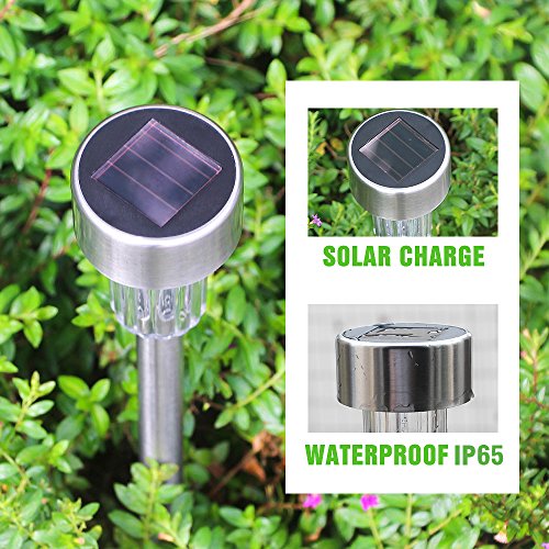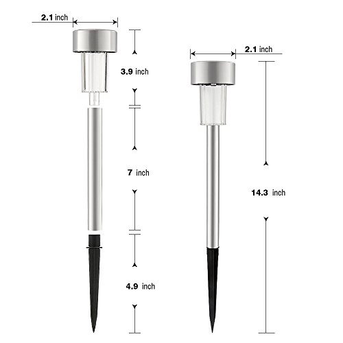 ✔EASY INSTALLATION: Very easy to assemble and place into the ground. The light/solar top has an on/off button underneath, just turn the switch to on, pull the stake out of the pole (the stake is hidden inside the metal tube) and reverse it