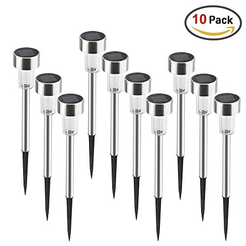 BASEIN Solar Powered Lights Outdoor, Landscape/Pathway Lights Stainless Steel Waterproof Solar Lights for Patio, Lawn, Yard, Walkway - 10 Pack