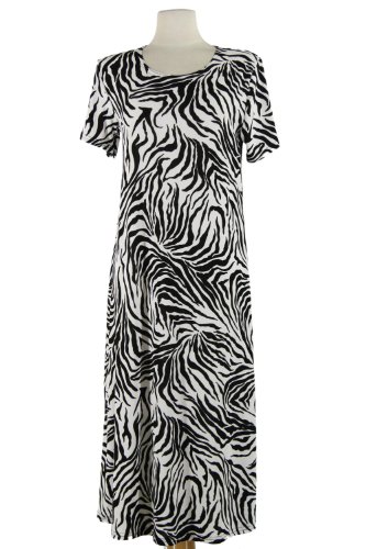 Jostar Stretchy Long Dress with Short Sleeve, Print in Animal Design Black Color in X-Large Size