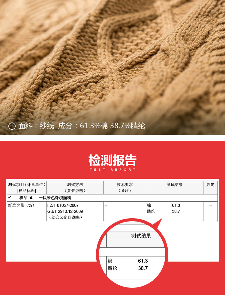 | 面 料:61.3%棉 38.7%腈纶颜 色:驼色 |