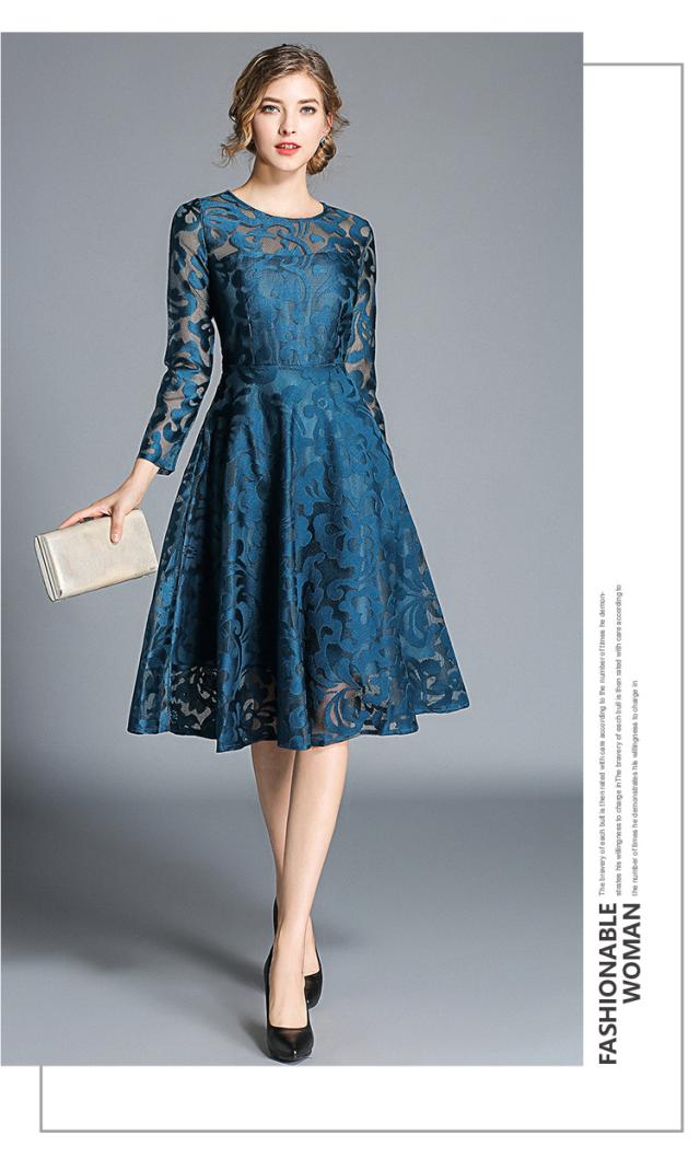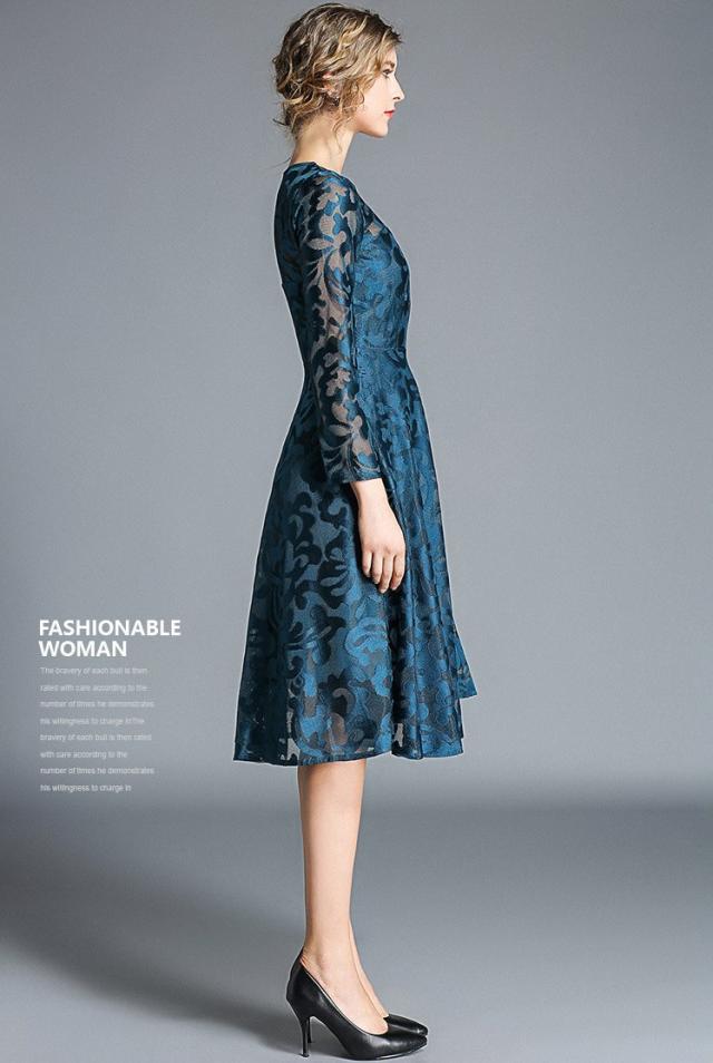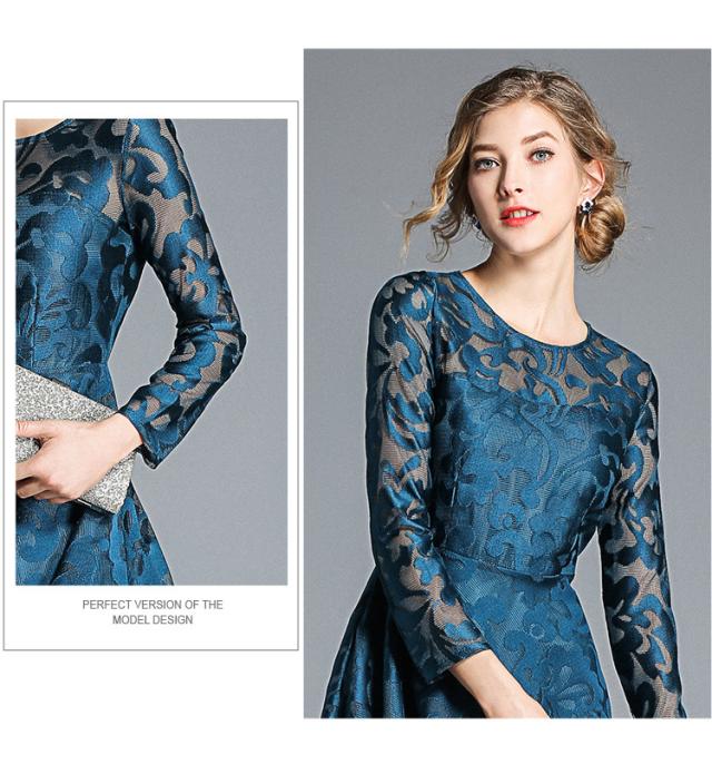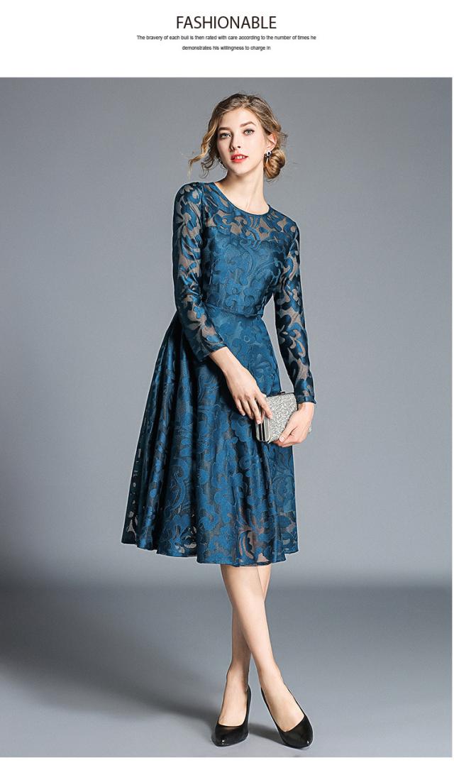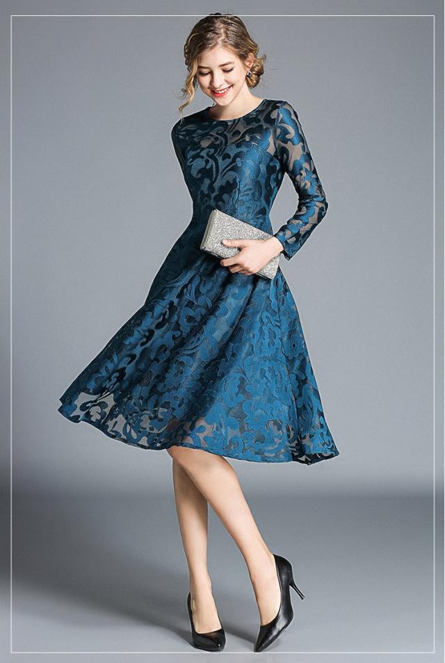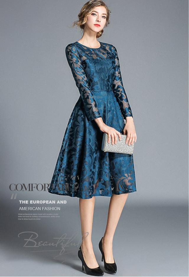 レース 刺繍 長袖 ドレス ワンピース パーティー 結婚式 二次会 女子会 謝恩会