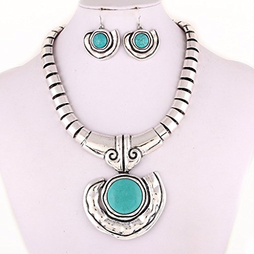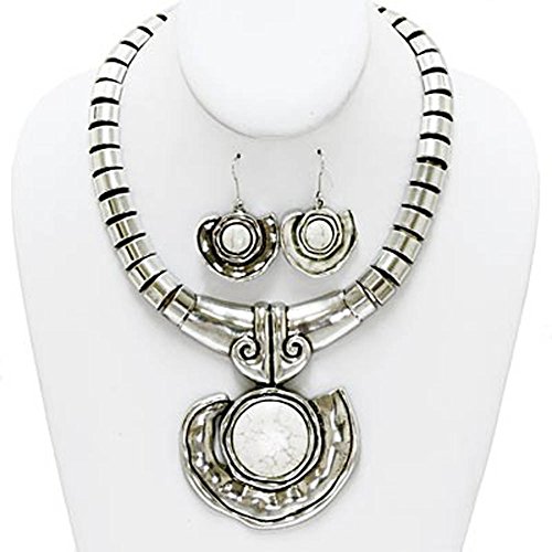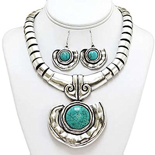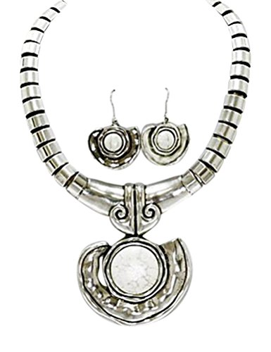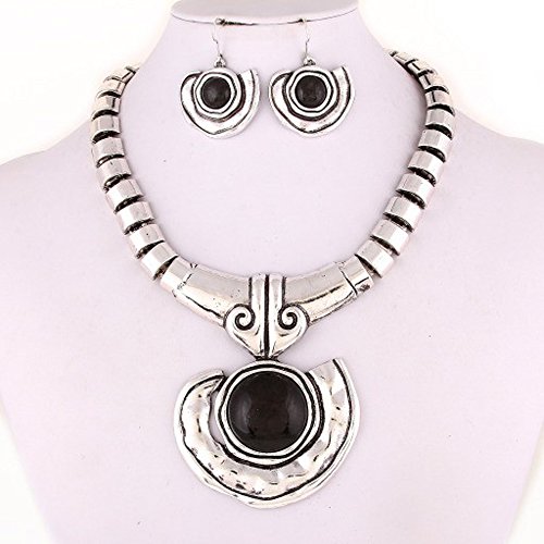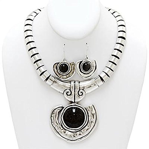 -. Binding : Jewelry -. Brand : HW Necklace Collection -. Department : womens -. Feature : Beautiful metal based burnished necklace with cylindrical links; 17 inches long plus 3 inch extension; lobster claw clasp / Large colored circular acrylic bead pendant / Pendant is approximately 2 3/4 inches wide by 2 1/4 inches tall / Burnished fish hook back dangle earrings of smaller circular colored bead is 1 7/8 inches long / Comes gift boxed by HW Collection -. ProductGroup : Jewelry -. ProductTypeName : FASHIONOTHER -. Title : Chunky Burnished Metal Colored Large Acrylic Bead Pendant Necklace and Earrings, 17+3" Extender