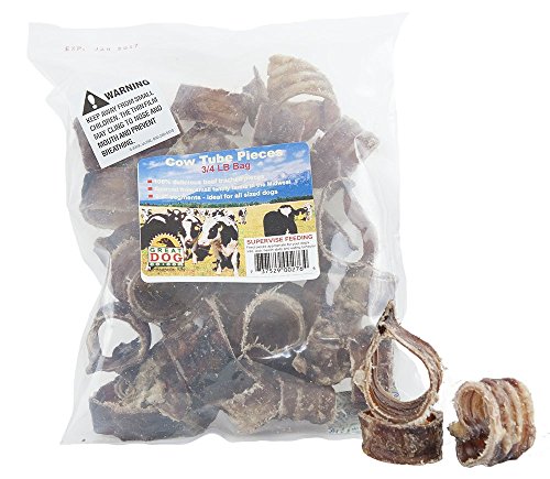 -. Feature : Cow Tube Pieces, sold in a 3/4 pound bag, are US sourced beef trachea and a great source of chondroitin sulfate which may ease still joints / Cow Tube Pieces are fun to eat, cracking when chewed, and are a great alternative to rawhide / Pieces range in size from .5 inch to 3 inches and are a great value for the multi-dog family, providing tasty chewing enjoyment / No soaks, smokes, washes, nitrates, colorants, BHA or BHT added