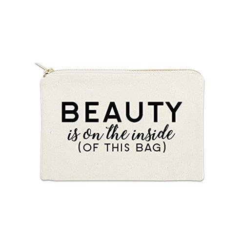 Beauty Is On The Inside Of This Bag 12 oz Cosmetic Makeup Cotton Canvas Bag - (Natural Canvas)