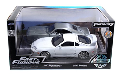 - Title : Dom's Dodge Charger R/T Bare Metal & Brian's Toyota Supra White "Fast & Furious 7" 2 Cars Set 1/24 by Jada 97444