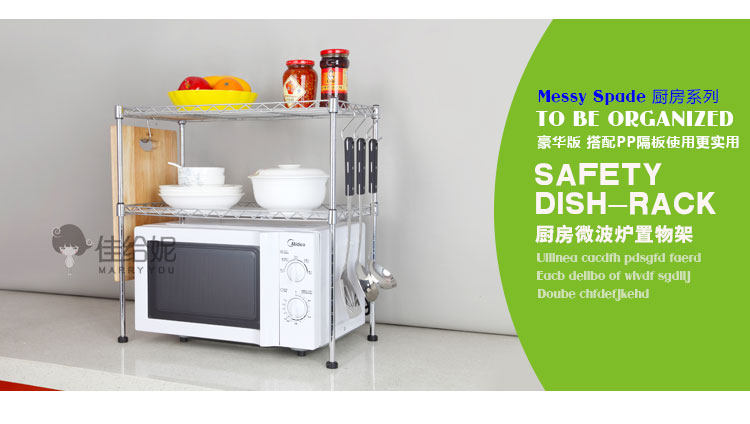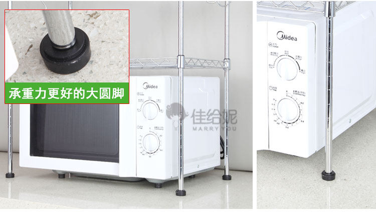 50CM款:长50 宽30 高50 厘米,只能放下长度45厘米以内的微波炉 55CM款:长55 宽30 高55 厘米,只能放下长度51厘米以内的微波炉 60CM款:长60 宽30 高60 厘米,只能放下长度56厘米以内的微波炉 注:层架高度间距可以任意调节使用,非常方便