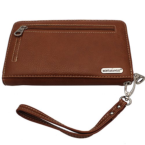 -. Brand : Montana West -. Color : Brown -. Department : womens -. EAN : 0606595759714 -. Feature : 7.5 x 1 x 4 / Pockets on the inside for cash, credit cards, ID / A zipper enclosure for the entire wallet -. ProductGroup : Shoes -. ProductTypeName : HANDBAG -. Size : Medium -. Title : Montana West Western Wallet MW-105-W003 BROWN -. UPC : 606595759714