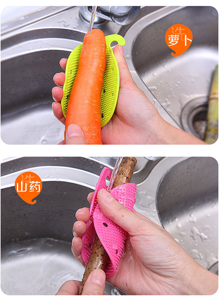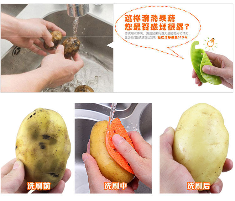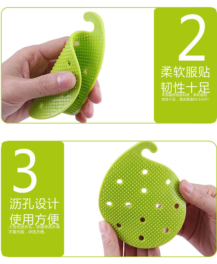 介绍:采用食品级硅胶材质,柔软有韧性,清洁时可贴合果蔬