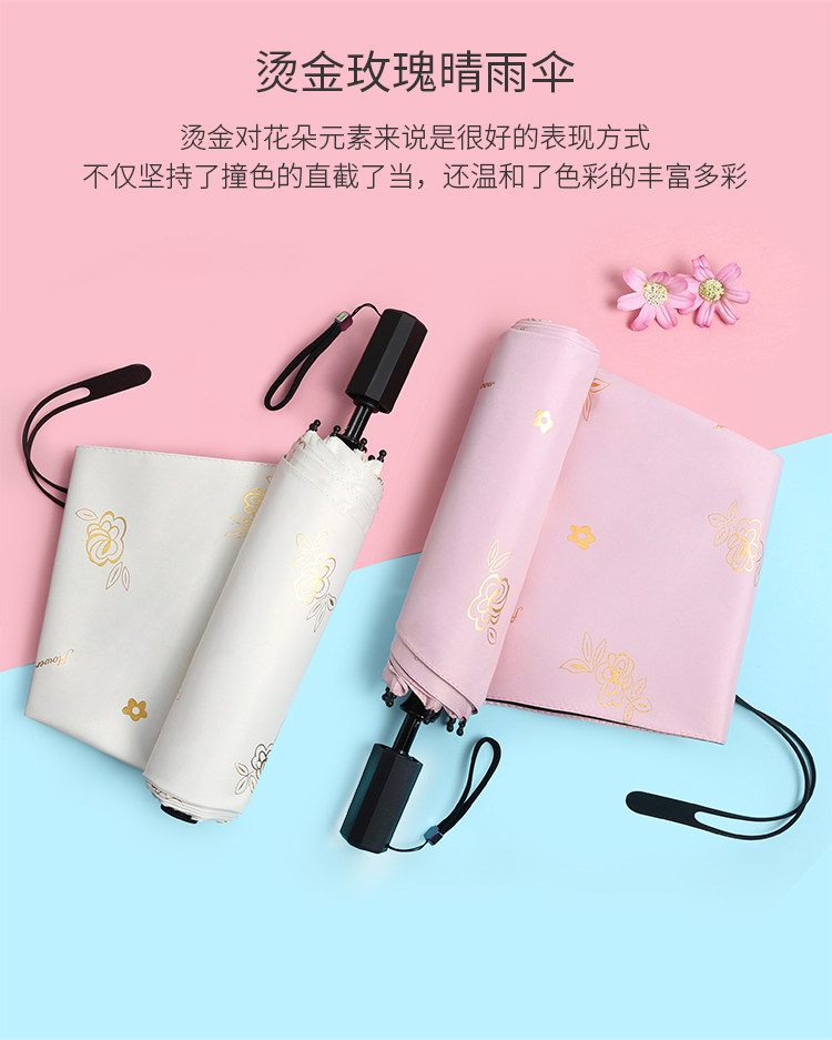 烫金玫瑰晴雨两用伞折叠学生女神遮阳伞防紫外线雨伞小清新三折伞
