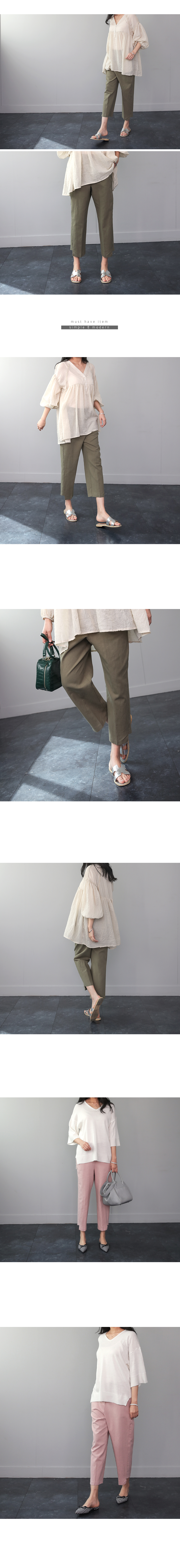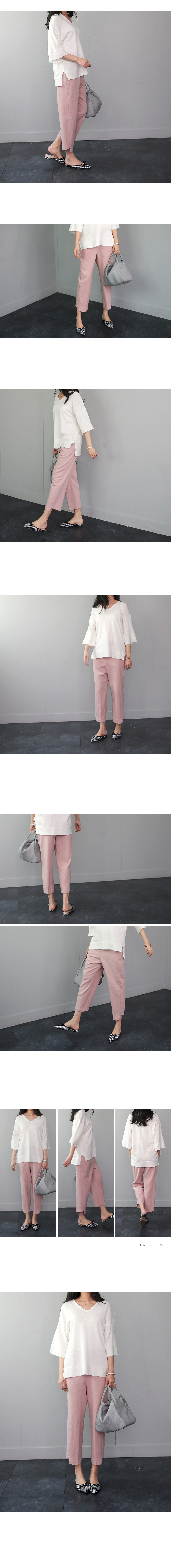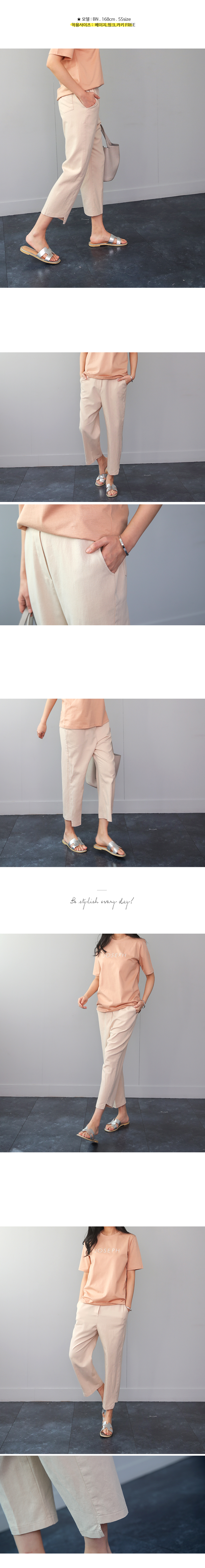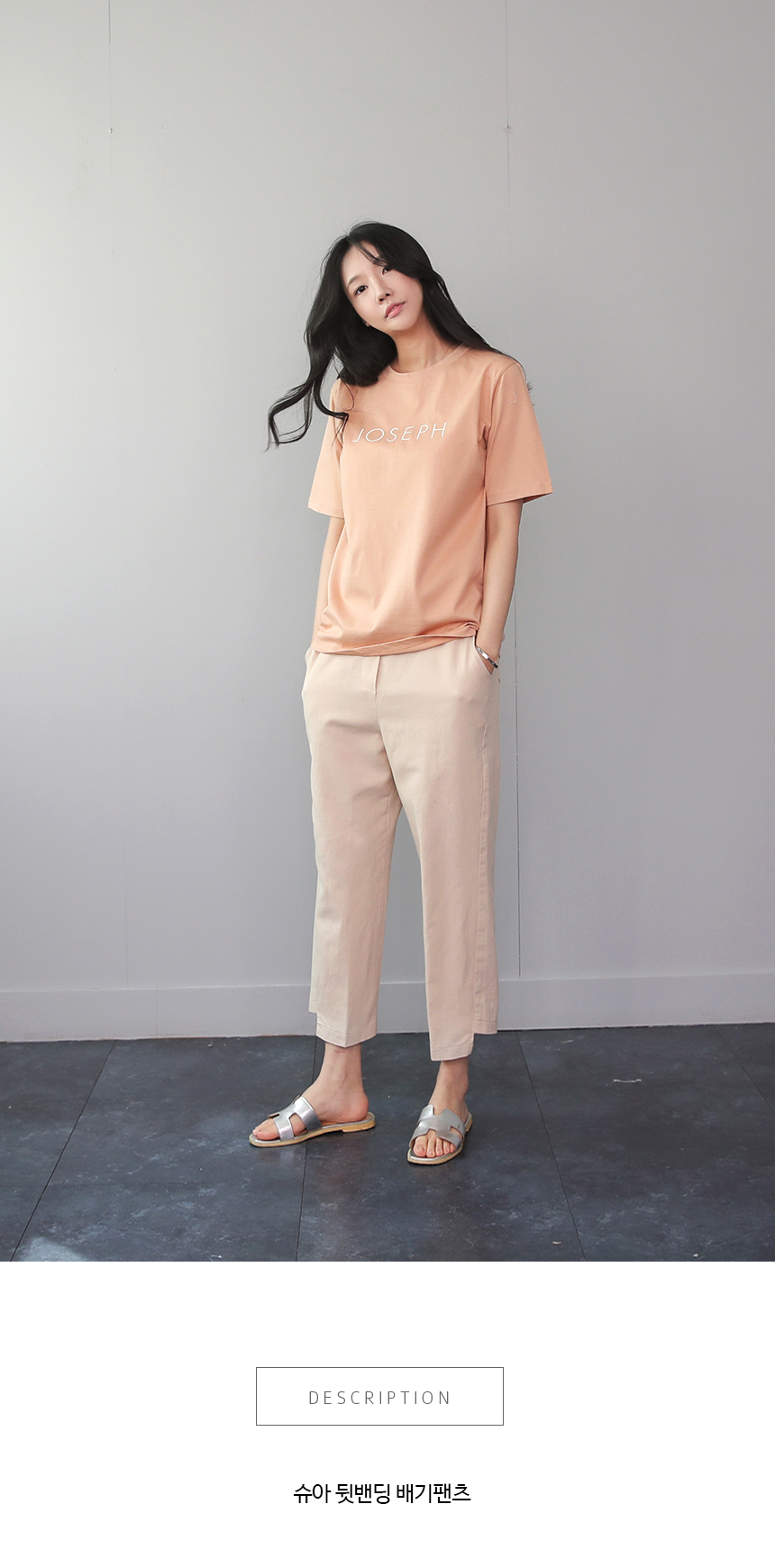 편안한 핏이 잘 어울리는 뒷밴딩 슬렉스에요