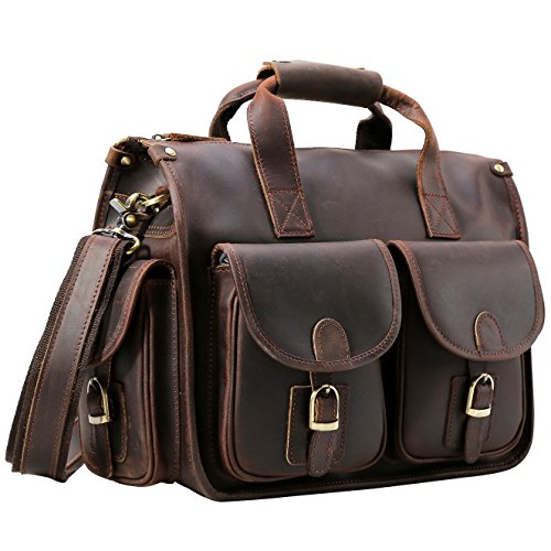 -. Title : Iswee Briefcase Leather 13" Laptop Bag Shoulder Bag for Business Vintage Satchel Bag for Men
