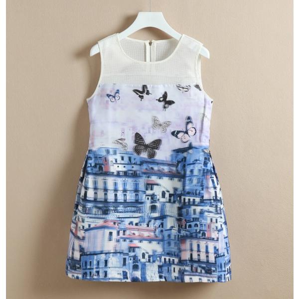 ノースリーブのバタフライ柄ユニークミニワンピースです♪