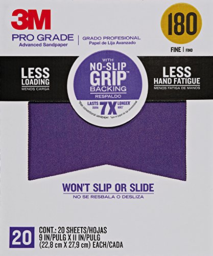 3M 26180CP-P-G 180 Grit Pro Grade No-Slip Grip Advanced Sandpaper (20 Pack), 9 x 11"
