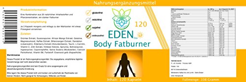 -. Title : VITARAGNA Eden Body Fatburner Day 120 Kapseln, Fettverbrenner Diät-Pillen bzw Abnehm-Pillen, Unterstützung zum natürlich abnehmen auch bei Bauchfett clean, glutenfrei, sojafrei, milchfrei, erdnussfrei