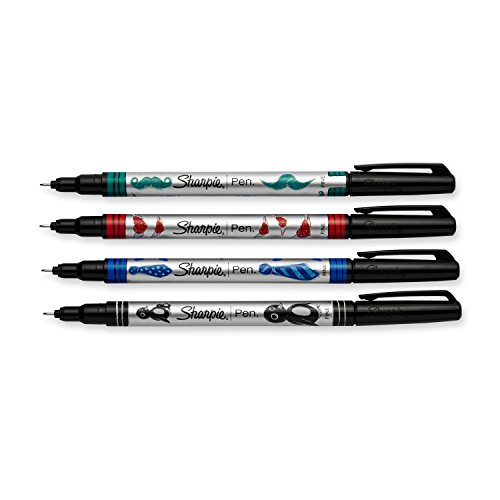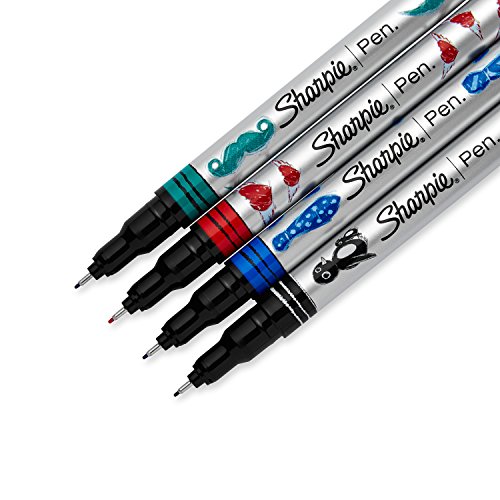 -. Feature : Color-full, brilliant shades ignite thought-provoking messages / Ink won't bleed through paper and is acid-free and archival-quality / Quick-drying ink is both water- and fade-resistant; AP certified / Fine point and slim, contoured design for effortless detail and control / Includes: black, blue, red, and green Sharpie fine point pens