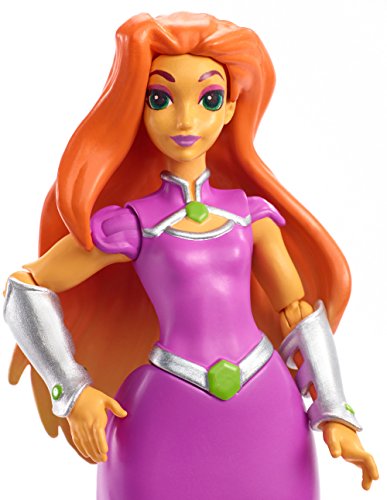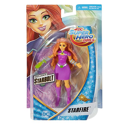 Let the DC Super Hero Girls action figures unleash your inner hero! Inspired by the powerful students of Super Hero High, these DC Super Hero Girls action figures are ready for powerful fun. Designed in 6-inch scale, the Starfire action figure is highly articulated for powerful posing and creative storytelling. Molded in durable plastic, the feisty fashionista can take on Super Hero stunts and portable play. Plus, she is ready to save the day dressed in her purple-shaded signature outfit (non-removable) with iconic details, like silvery belt with green “gem,” shoulder armor with “gem” and tall purple boots. Her silvery gauntlet with a starburst highlights her story and her fiery super power to add to the fun. Kids will love finding their own unique abilities along with these Super Hero students in ways both big and small. From a routine school day to a Super Hero adventure, the galaxy is the limit! Collect all of the DC Super Hero Girls action figures to build your own Super Hero team (each sold separately, subject to availability). Includes 6-inch Starfire action figure wearing signature outfit with starburst gauntlet. Colors and decorations may vary.Feature