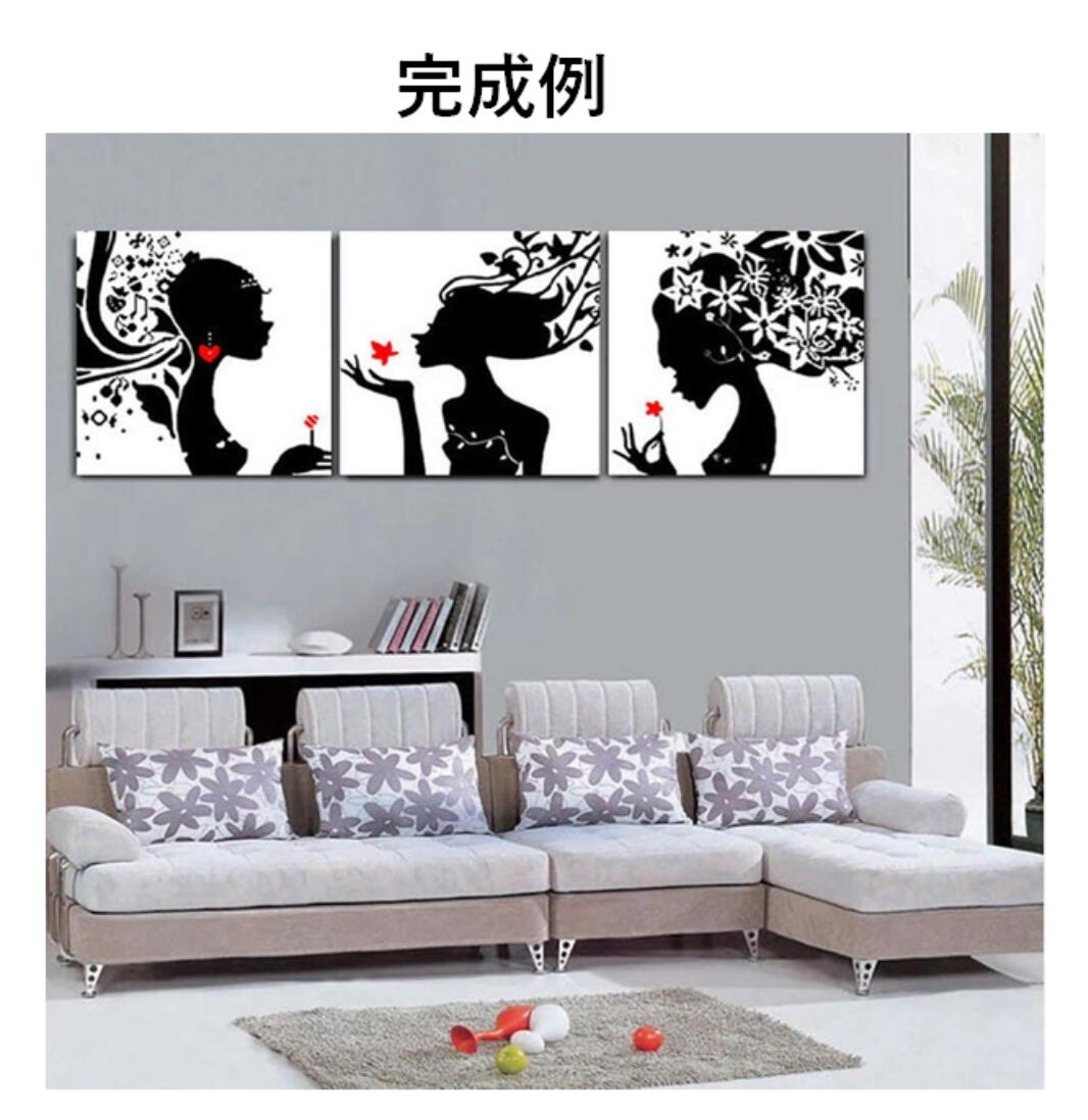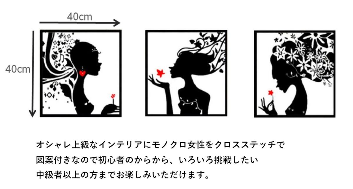 クロスステッチ 刺繍キット 大判 モノクロ女性 3枚 セット 刺しゅう 手芸 ホビー DIY インテリア