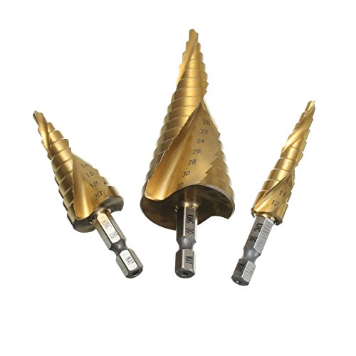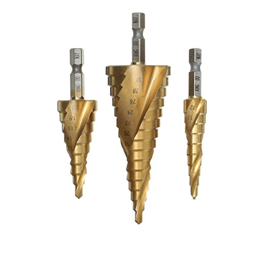 KING DO WAY 3pcs HSS Spiral grooved Step Drill Bit 4mm to 12mm/20mm/32mm Cut Tool Set
