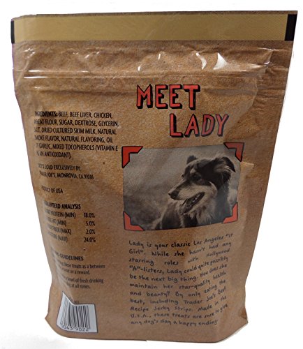 -. Binding : Misc. -. Brand : Trader Joe's -. EAN : 0799206752164 -. Feature : Trader Joe's Beef and Chicken Jerky snakes / MADE IS USA - Keep you Dog and Pup safe / Yummy Yummy dog and puppy treats/snacks / Your dog will not be disappointed / Each bag is 6 oz's - 12 oz Total -. Label : Trader Joes -. Manufacturer : Trader Joes -. PackageQuantity : 2 -. ProductGroup : Pet Products -. ProductTypeName : PET_SUPPLIES -. Publisher : Trader Joes -. Studio : Trader Joes -. Title : Trader Joes - Dog Treat Jerky Combo 2 Pack 12 total OZ's -Beef Jerky + Chicken Jerky - Made in USA - High Quality Tastey Treats - Dogs Love Them. -. UPC : 799206752164