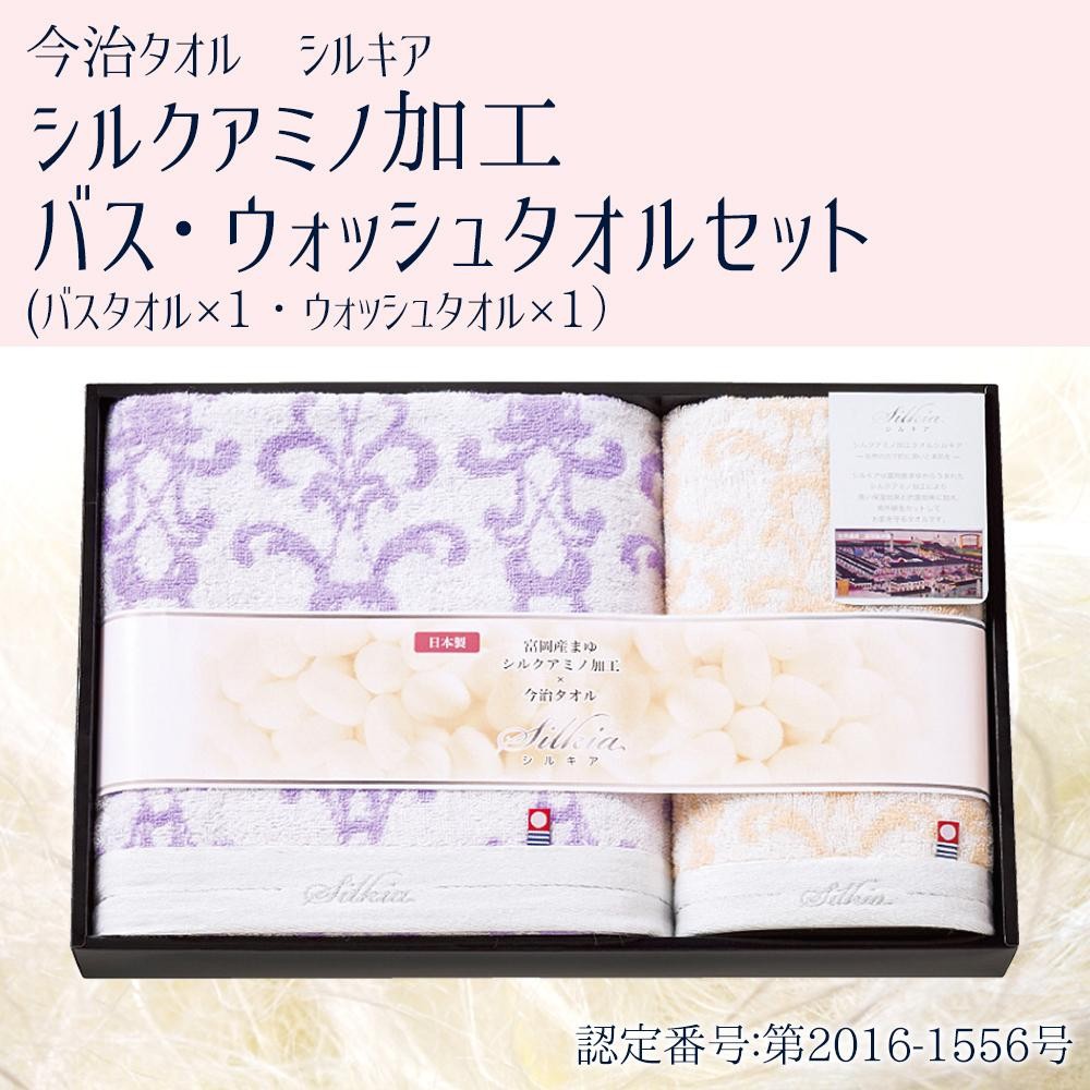 | シルクアミノ加工が施されたバスタオル・ウォッシュタオルセットです。シルキアは富岡産まゆからうまれたシルクアミノ加工により、高い保湿効果と抗菌効果に加え、紫外線をカットしてお肌を守るタオルです。 |