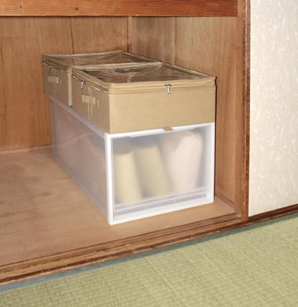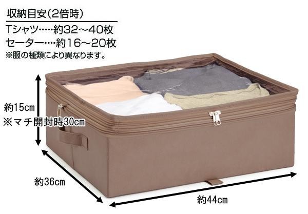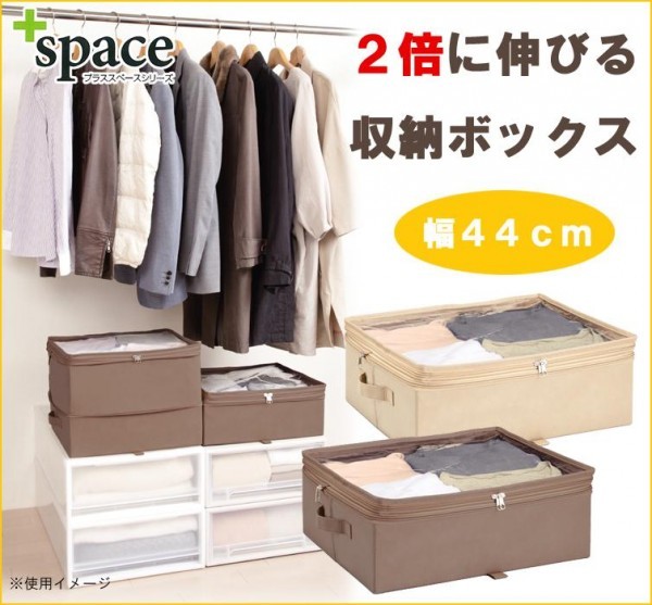 ファスナーを開くと収納量が2倍にアップ。きれいにたためる折りたたみシートが1枚付いています。 製造国:中国 素材・材質:本体:ポリプロピレン窓:EVA 商品サイズ:幅44×奥行36×高さ15(マチ開封時30)cm 重量:510g セット内容:本体、折りたたみシート×1枚 ※サプライヤー直送品  ご注文後、当日~1営業日後の出荷となります【商品名】plus space(プラススペース) 2倍に伸びる収納ボックス 幅44cm ベージュ・AP-616610